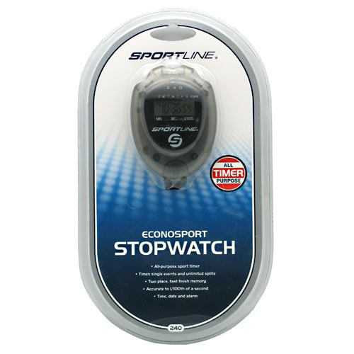 All purpose sports timer. Times single events and splits. Two place, fast finish memory. Laser tuned for 1/100th second accuracy. Time, date and month. Alarm. Large, easy to read display. Minutes, seconds 1/100 sec. display. Day of week indicatory. Shock resistant case. 40"/102 cm Nylon lanyard. Battery included.