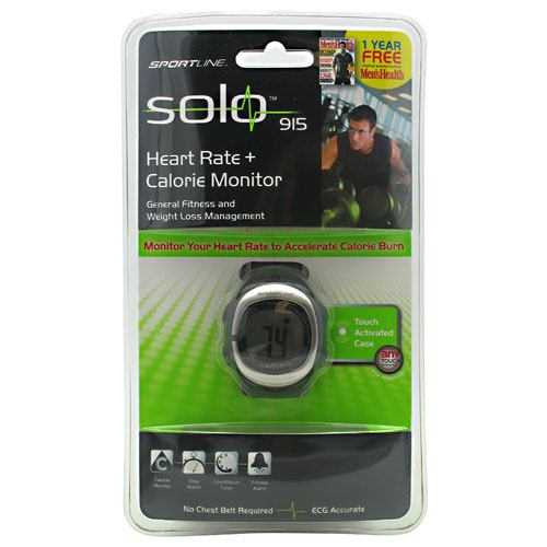 The 915 is the 1st of its kind to incorporate Any-Touch heart rate technology. Touch anywhere on the stainless steel case and see your heart rate instantly. The Solo 915 doest not require a chest belt, allowing you to measure your heart rate on the go. A single touch delivers ECG accurate measurements in seconds. Additional calorie-burn and fitness features make for an essential addition to any workout. Monitor Your Heart Rate to Accelerate Calorie Burn; Touch Activated Case, Any Touch Technology; Calorie Monitor, Stop Watch, Countdown Timer, Fitness Alarm; No Chest Belt Required, ECG Accurate. Calculates Calories Burned; Any Touch Technology; ECG Accurate Heart Rate Reading; No Chest Belt Required; Time (12/24 Hour Setting); Large Digital Display; Backlight; Fitness Alarm; Hourly Chime; Stopwatch; Water-Resistant to 50 Meters; Calendar; Countdown Timer; Functions in English and Metric Standards; Detailed Instructions Enclosed; Button Cell Battery Included; 1 Year Warranty.