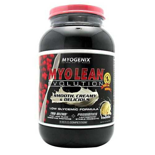 Dietary supplement. Technology of muscle. Myo Lean Evolution has set the new standard for meal supplements by providing the most technically advanced blend of whey isolates and slow releasing proteins, and combining them with the highest quality "healthy" fats, all in a low carb, low glycemic formula. We intended on making a "perfect meal" for the elite athlete. We ended up with a product so loaded with high quality raw materials, so nutrient dense, it would benefit not only elite athletes looking to add powerful lean muscle, but anyone looking to improve their health and physique through nutrition. Plus, in the tradition of all Myogenix products, it tastes great! Zero competition! Zero Whey Concentrates, Zero Lactose, Zero Maltodextrin, Zero Trans Fats. Myo Lean Evolution is loaded with macro-nutrients and micro-nutrients. But, sometimes whats not in a product is more telling of the quality. Evolution has zero whey concentrates, only whey isolates plus slow releasing anti-catabolic proteins. This of course means zero lactose, zero gas, and zero bloating. Only the highest quality, most biologically available proteins on the planet have been selected for use. Plus, weve added digestive enzymes to ensure your body assimilates every gram. Myo Lean Evolution also has zero maltodextrin. Maltodextrin, which has been used for years and is still being used by many "top" companies, has a glycemic rating 40% higher than table sugar. Bottom line, Myo Lean Evolution has everything you need from a meal supplement and none of what you dont. PentaProtein 50/50: A "true" blended protein. Myo Lean Evolution contains 1/2 fast acting, anabolic whey protein isolates, and 1/2 slow releasing, anti-catabolic proteins. Consuming a product with fast and slow releasing proteins is critical to provide a steady flow of essential amino acids into your bloodstream over a period of hours. Slow releasing proteins are especially important at night-time when your body is normally in a fasting state and muscle is breaking down. Plus, with Evolution you get a "true" blend. Many other companies claim to have "blended" proteins. Dont be mislead. If you see whey protein concentrate on the label, even if its the last ingredient in a blend [ex. Premium protein blend (whey isolates, egg albumin, micellar caseinate, whey hydrolysates, whey protein concentrates)] you can be certain it makes up over 90% of the protein content of that product. Use Myo Lean Evolution with PentaProtein 50/50 "true blend" and watch your body undergo an evolution of its own! Myo Lean Evolution is guaranteed to be the highest quality, best tasting meal supplement ever formulated. 100% Money Back Guarantee! These statements have not been evaluated by the FDA. This product is not intended to diagnose, treat, cure, or prevent any disease.