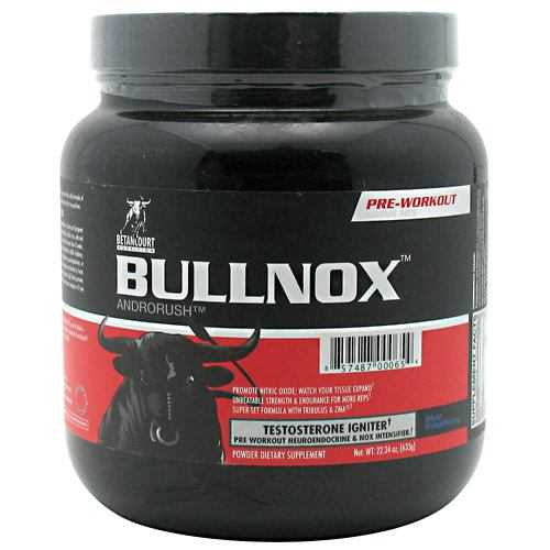 Bullnox Androrush is a Pre-Workout Nitric Oxide (NOX) Intensifying drink mix, and one of the only formulas of its kind with a "Super-Set" formula structure whose effects are intended to change with each set that you perform. Promote Nitric Oxide; Watch Your Tissue Expand. Unbeatable Strength & Endurance For More Reps. Super-Set Formula With Tribulus & ZMA. Testosterone Igniter. Pre-Workout Neuroendocrine & NOX Intensifier. Made in the USA. CarnoSyn Carnosine Synthesizer. Feel new BULLNOX working with you set by set! Set 1 ("Andro Stimulation"): Purpose: Support the naturally occurring testosterone response to exercise and amplify it to support a more anabolic response. The Andro Stimulation also further enhances the "Pump" response to exercise. Set 2 ("Neuro-Emotive Energy"): Purpose: Support overall neurological performance and motivation by enhancing cognitive function and decreasing the muscular pain associated with exercise. Will also enhance and sustain energy levels during exercise without overstimulation or a drop off in performance. Set 3 ("Nitric Oxide"): Purpose: Increase nitric oxide (NOX) levels, blood flow and dilation/volumization of cardiovascular and muscular tissues; improve quality of pumps (faster onset, harder). Set 4: ("Strength-Endurance"): Purpose: Enhance strength and power levels (increasing 1 rep maximum). Also boosts endurance by reducing blood lactates to increase your abili8ty to perform multiple repetitions. The formula is designed to maximize power output while minimizing water retention. Set 5 (Anabolic Solidification"): Purpose: Increase protein synthesis; enhance exercise-induced muscle hypertrophy; increase muscle size and hardness.