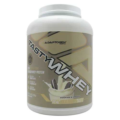 100% Ultra Pure Premium Whey Protein. Mixes Easily Amazing Taste. Rich Source Of Fat Burning MCT. Contains No Cheap Blends. Real Milkshake Taste. Gluten Free. The Worlds first high performance whey protein that tastes so amazing that you wont believe you are drinking a protein drink. Everyone will love this - it is a drink that will please the whole family! Real milk shake taste, incredibly mouth watering and smooth, with no protein or sweetener aftertaste. After years of research and development, Adaptogen Science has finally developed what we consider the most complete, and best tasting protein on the market...appropriately named Tasty Whey. Tasty Whey is a high protein supplement mix that provides exceptional nutrition. It promotes peak wellness by use of a proprietary combination of exceptionally high quality whey protein, along with MCTs, low glycemic index carbohydrates, and micronutrients and with an awesome taste too!