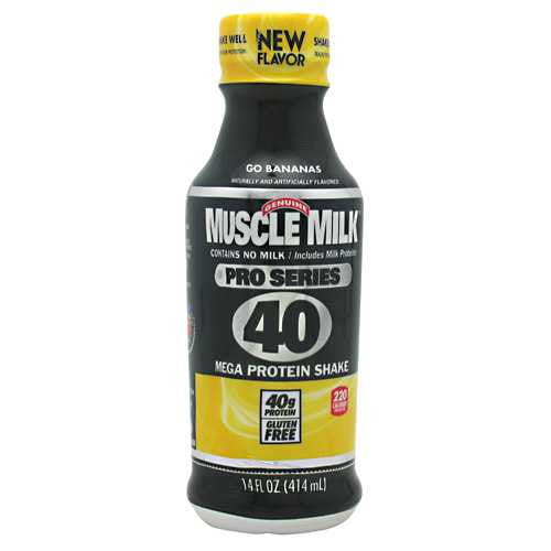 Contains no milk/ includes milk protein. Mega protein shake. 40g protein, lactose free, gluten free, 220 calories per bottle. Some people are easily satisfied. For them good is enough. But for others, satisfaction doesnt exist. What does exist is an unquenchable desire to complete one more rep, one more sprint, one more grueling workout. Muscle Milk Pro Series 40 gives you forty grams of protein to help you recover and build strength. Because we know you want to push your limits. It isnt for some people. Its for you. Muscle milk. Workout recovery fuel. Give me strength.