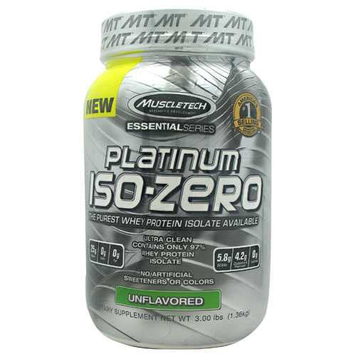 The purest whey protein isolate available. Ultra clean, contains only 97% whey protein isolate, no artificial sweeteners or colors. Platinum Iso-Zero is the purest whey protein isolate formula ever from MuscleTech. Using the highest grade 97% purity whey protein isolate, Platinum Iso-Zero delivers an ultra-premium, ultra-clean product with exceptional protein macrofractions, plus zero fat, carbohydrates, sugar, and lactose. The secret is in the way the protein powder is extracted. By using ion exchange technology, Platinum Iso-Zero is able to deliver the highest purity and highest BCAA concentration. Platinum Iso-Zero also has zero artificial flavors, sweeteners, colors, or dyes. And since Platinum Iso-Zero also contains no lactose and is gluten free, its perfect for virtually anyone. Platinum Iso-Whey mixes quickly and easily with a spoon, and can be taken on its own, added to another drink, or used to enhance your favorite recipe.