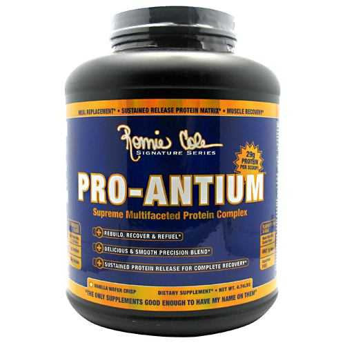 Rebuild, Recover & Refuel. Delicious & Smooth Precision Blend. Sustained Protein Release for Complete Recovery. RONNIES WHEY...GO BIG OR GO HOME. A bodybuilders diet revolves around one key element...PROTEIN! Being that I have over 20 years of experience in the highest competitive level of bodybuilding and the fact that Ive won a record 8 Mr. Olympia titles, I know a thing or two about protein supplementation. PRO-ANTIUM has been designed with one purpose in mind: to provide you with the highest quality protein at the most concentrated level. If youre reading this paragraph its probably because you realized that 29 grams of precision blended protein per scoop is pretty freaking serious! You might even notice 29 grams of protein is quite a bit more than the standard, well Im not your standard bodybuilder and youre not looking for standard results! Its time that someone steps up to the plate and puts out a formula that offers extra protein to those that need it. Bodybuilders and fitness athletes need every gram of protein they can get and meeting those needs can get extremely expensive. Believe me, no one knows this better than me. PRO-ANTIUM™ has been built for these types of athletes. As a world-class competitor, I cant expect athletes to take something I wouldnt take myself – 29 grams of the highest quality protein is my choice. PRO-ANTIUM is delicious, smooth, and most importantly...STRONG! Go with PRO-ANTIUM: When every gram counts. YEAH BUDDY!