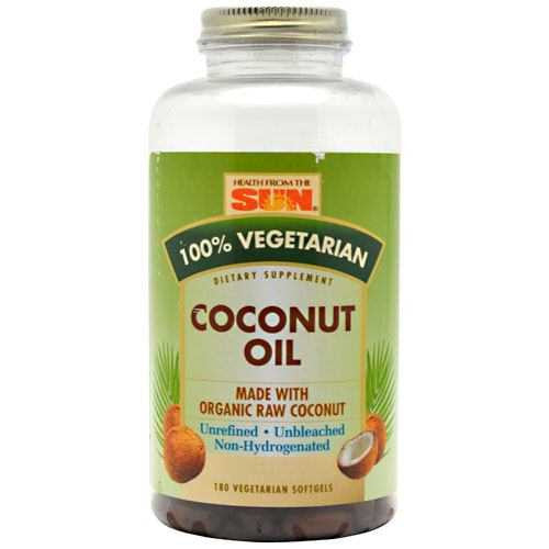 Health From The Sun 100% Vegetarian Coconut Oil Softgels provide all of the healthy benefits of raw, organic coconut oil in a convenient, portable form. Each softgel contains 1,000 mg virgin, unrefined and non-hydrogenated coconut oil encapsulated in pure plant-based gelatin. Coconut oil is one of nature’s best sources of healthy medium-chain triglycerides (MCTs) which play a key role in the body’s metabolism of fats. Coconut oil is also considered to be one of the most abundant sources of lauric acid, second only to human breast milk. Lauric acid has been studied for its reputed benefits on metabolism, thyroid function and immune function. Other benefits of coconut oil include nutritive support for healthy skin and hair. Rigorously quality tested to guarantee purity, potency and truth-in-labeling. Made with organic raw coconut. Unrefined. Unbleached. Non-Hydrogenated. 100% Vegetarian.