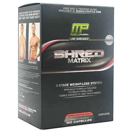 8-Stage Weight-Loss System. Shred Matrixs Careful Combination of Clinically proven ingredients is physician-formulated, resulting in one of the most complete, most effective fat loss systems available. Shred Matrixs comprehensive formula attacks fat from all angles, in its 8-stage weight loss system. Stage 1: Increase Energy, Stage 2: Ramp Up Metabolism, Stage 3: Crush Hunger, Stage 4: Block Fat Formation, Stage 5: Anti-Stress Mood Balancing Blend, Stage 6: Razor-Sharp Mental Focus, Without Crash or Jitter, Stage 7: Eliminate Excess Water, Stage 8: Destroy Sugar Cravings. Stages 1 and 2: Increase Energy and Ramp Up Metabolism: Shed matrix meticulously combines several carefully selected natural stimulant agents that have proven fat loss properties. These select herbs are the double edged weapon against stored fat. These key ingredients support the mobilization and utilization of stored fats, to be used for energy. These same ingredients simultaneously deliver concentrated, sustained, performance enhancing energy and focus without jitter or crash my speeding up metabolism and feeding the ramped up metabolic rate with fats pulled from the bodys fat stores. Stages 3 and 4: Crush Hunger & Block Fat Formation: Shred Matrix helps regulate blood sugar, which directly impacts the hunger sensation, appetite and energy levels. Shred Matrix also supports favorable nutrient repartitioning which means increasing insulin sensitivity and facilitating the uptake of carbohydrates directly into muscle cells, away from fat storage areas, thus "blocking" fat formation. Better nutrient absorption means greater fat utilization for energy. Stage 5: Anti-Stress (Adaptogen), Mood-Balancing Blend: Shred Matrix makes it easy for you to stick to your nutritional plan by including several key adaptogenic, mood-enhancing and balancing agents to help counter the irritability and mood swings that can be associated with dieting. These natural, herbal ingredients may contribute to an improved sense of well-being and enhance mood by supporting healthy brain chemistry. Stage 6: Razor-Sharp Mental Focus, Without Jitter or Crash: Shred matrix contains key herbal ingredients that help support natural brain chemistry to enhance mental function and improve mood-very important to successful dieting. Shred Matrixs sophisticated formula provides all-day energy without crash or jitter. Perform better with razor sharp focus and alertness using Shred Matrix. Stage 7: Eliminate Excess Water: Shred Matrix diuretic complex will help maintain fluid balance to keep your physique Lean and Tight. Keeping the water in the right places and maintaining healthy fluid balance, will help the body systems work more efficiently, resulting in the tight, lean appearance that were all after. Stage 8: Sugar Stop and Enzyme Aid Matrix Destroy Sugar Cravings: Shred matrix addresses the problem of sugar/sweet craving with the proprietary Sugar Stop Matrix. Sugar Stop crushes the craving for sweets and sugar often associated with dieting for weight loss. The key enzymes in Shred Matrix help shuttle nutrients more efficiently into the bloodstream, maintaining better blood sugar maintenance for better control of cravings, and better use of ingested calories. What is Shred Matrix: The most powerful fat loss system available. Is completely unique-utilizing the power of the comprehensive 8-stage fat loss system, formulated to help you achieve the tight, fit, lean and toned body youve been seeking. Utilizes the bodys multiple energy pathways to mobilize fat to become the bodys primary fuel source. Destroys cravings, curbs hunger, improves energy and alertness and enhances mental focus and mood. 8 Stage Weight Loss Proprietary Blend: Stages 1 & 2: Energy & Fat Metabolism: Guarana Seed Extract (Paullinia Cupana) (22% Caffeine), Caffeine Anhydrous (150 Mg), Green Tea Extract (40% EGCG) (Camellia Sinensis)(Leaf), Suma Extract (20:1)(Pfaffia Paniculata)(Root), Saw Palmetto (Serenoa Repens)(Berry), Yerba Mate (Ilex Paraguariensis)(Leaf), Fo-Ti (Polygonum Multiflorum)(Root), Eleuthero (Eleutherococcus Senticosus)(Root), Cayenne 40,000 HU/g (Capsicum Annum)(Pepper), Yohimbine HCL. Stages 3 & 4: Appetite Balancing & Weight Management Control: Glucomannan (Amorphophallus Konjac)(Root), Guar Gum, Alpha Lipoic Acid, Gymnema Sylvestre (Leaf), Banaba Extract (1% Corosolic Acid)(Lagerstroemia Speciosa)(Leaf), D-Biotin, Calcium Malate, White Kidney Bean (Phaseolous Vulgaris)(Bean), Chromium (Chelate). Stage 5: Anti-Stress Mood Balancing Matrix: Turmeric (Standardized For Curcuminoids)(Curcuma Longa)(Root/rhizome), Panax Ginseng Root, 5-HTP (Griffonia Simplicifolia)(Seed), Echinacea Angustifolia (Root), Garlic, Wood Betony (Betonica Officinalis)(Herb), Astragalus (Astragalus Membranaceus)(Root). Stage 6: Brain Power Matrix: Pyroglutamic Acid, Papain. Stage 7: Diuretic Complex: Uva Ursi (Arctostaphylos Uva-Ursi)(Leaf)(Contains Arbutin, Methyl-Arbutin), Dandelion (Taraxacum Officinale)(Root) Extract 20:1 (Contains Taraxol &Taraxerol), Potassium AspartateStage 8: Sugar Stop & Enzyme Aid Matrix: DigeSEB (Amylases, Protease Blend [I, II And III], Lipase, Lactase, HemiSEB Cellulase, Maltase, Invertase, Bromelain, Peptizyme SP, Papain And Alpha-Galactosidase), Ginger (Zingiber Officinale)(Root), Fennel (Foeniculum Vulgare)(Seed), Almond Oil Powder, Dulse (Palmaria Palmata)(Algae), Alfalfa (Medicago Sativa)(Leaf), Chlorella, Artichoke (Cynara Cardunculus)(Leaf), Irish Moss Red Algae (Chondrus Crispus)(Algae), Wild Mexican Yam (Dioscorea Villosa)(Root), Apple Pectin, Kelp, Bromelain, Rutin NF.